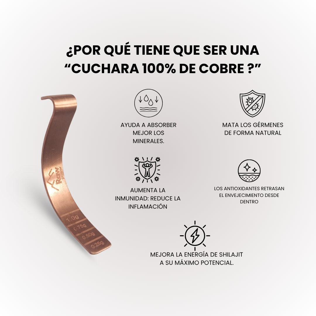Cuchara ergonómica de cobre 100% puro diseñada específicamente para Shilajit.