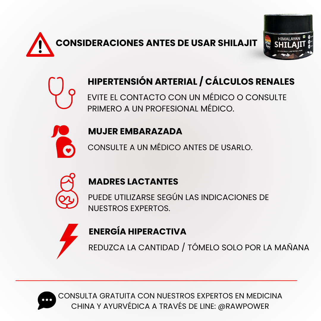 Alergias: Si eres alérgico al Shilajit o a alguno de sus componentes, no uses este producto.
