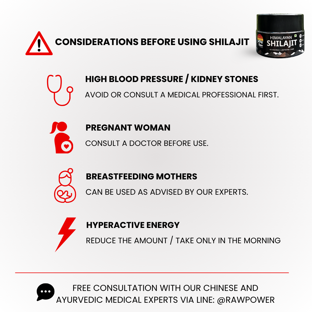 - Allergies: If you are allergic to Shilajit or its components, do not use this product.