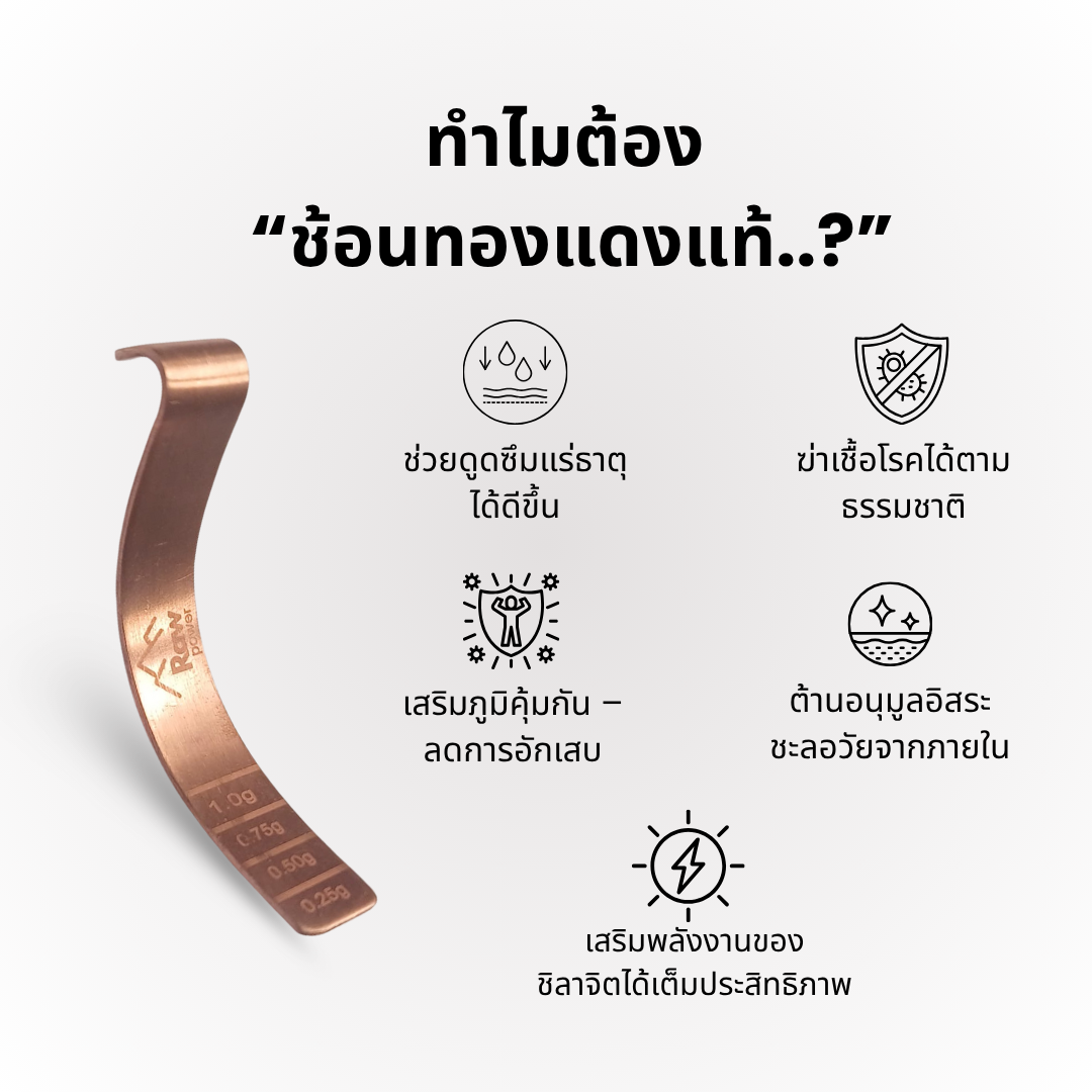 ช้อนทองแดงบริสุทธิ์สำหรับตวงชิลาจิตในปริมาณที่แม่นยำ ช่วยรักษาความบริสุทธิ์ของเรซิน และเพิ่มพลังงานตามหลักโลหะทองแดง